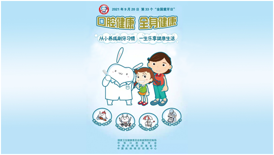 2021年9月20日是第33个“全国爱牙日”,今年宣传主题是“口腔健康 全身健康”。副主题是“从小养成刷牙习惯,一生乐享健康生活”。