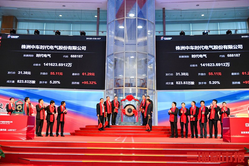三湘都市报·新湖南客户端9月7日讯(记者 潘显璇 通讯员 龙觐 喻佳培)今天,株洲中车时代电气股份有限公司在上交所科创板挂牌上市,股票简称时代电气,股票代码688187,湖南A股上市公司数量扩容至123家。时代电气本次公开发⾏股票24076.0275万股,发行价格31.38元/股,募集资金总额约75.6亿元,成为湖南有史以来A股IPO募集资金规模最大的企业。