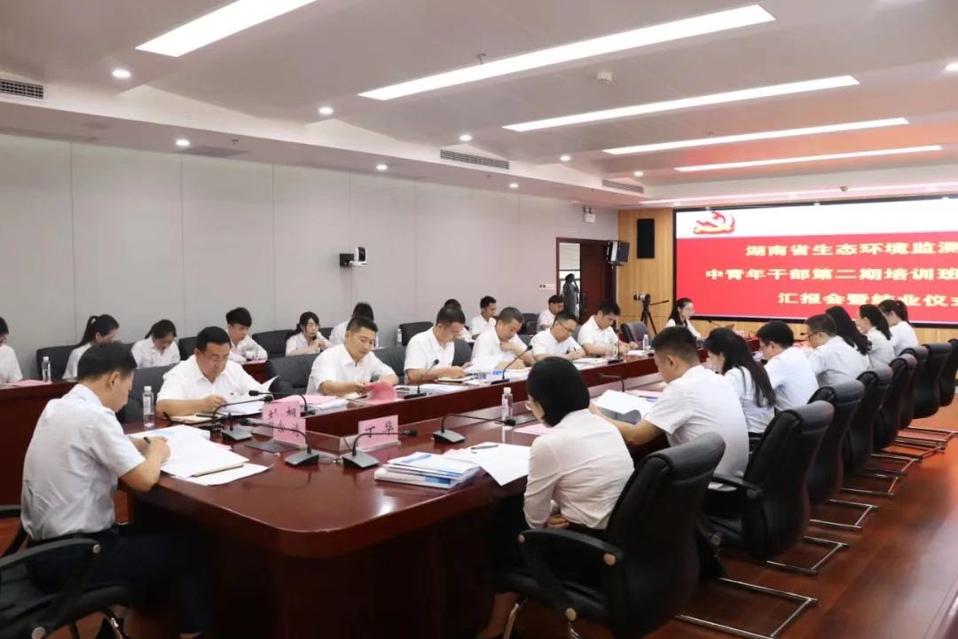 9月17日,省及驻市州生态环境监测中心中青年干部第二期培训班成果汇报会暨结业仪式圆满举行,湖南省生态环境监测中心党委书记、主任余涛出席会议并讲话。会议由省中心党委委员、副主任刘桐主持,党委委员、副主任丁华及各部室负责人、中青班全体学员参加。