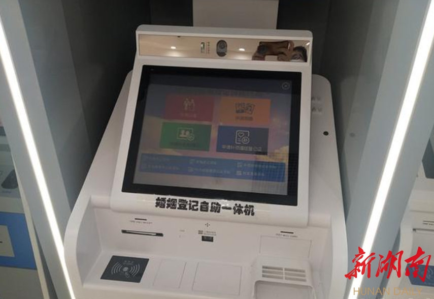 作为婚姻登记当中的“小助手”,长沙市天心区政务服务大厅内的婚姻登记自助一体机尤为打眼,工作人员介绍,这是全省首台婚姻登记自助终端。有了它,新人们在下班时间也可以完成领证前的手续。