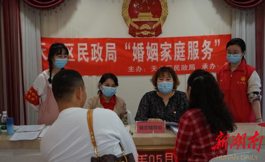 遇上5月20日、七夕等特殊日子,长沙市各区县民政局为让每对新人都能顺利领证,把上班时间提前半小时、一个小时,开放多窗口,最大程度满足市民的结婚登记需求。