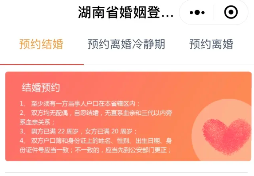 据长沙市民政局负责人介绍,结婚登记“全市通办”服务实行网上“预约制”,市民可通过湖南省婚姻登记网上预约系统、“湖南民政”“长沙民政”微信公众号预约申请跨区域办理结婚登记,并上传个人资料和户口簿等信息。