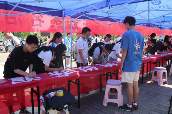 正午时分,骄阳似火。“保卫祖国,建设祖国是每一个公民的神圣职责”巨型横幅在长沙理工大学汀香园前坪格外耀眼,学生正排队在横幅上写下自己保家卫国的郑重承诺并签名留影。