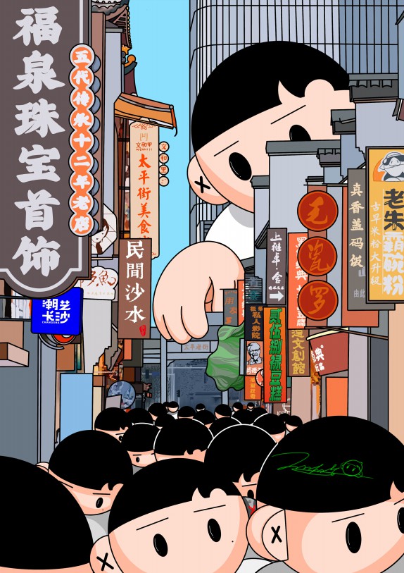 据悉,10名参展艺术家中,有职业画家、有设计师、有小学美术老师、有远在东京留学的艺术生、还有艺术商店主理人、摄影师、动画设计师等,作品风格、主题、呈现各不相同且独具特色,而最为重要的是,他们都是代表长沙潮流、时尚前沿的创作个体。