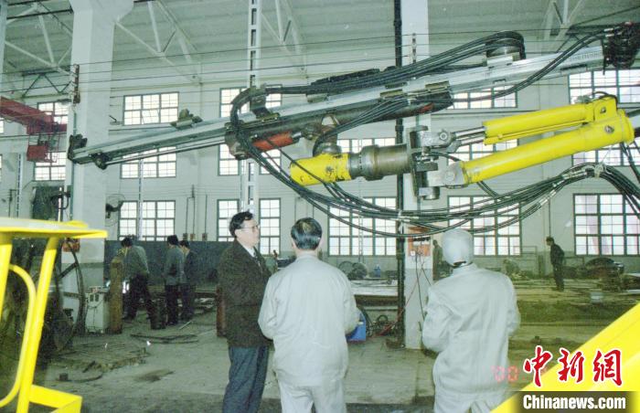 2000年2月,山河智能首台隧道凿岩机器人调试现场。 山河智能供图