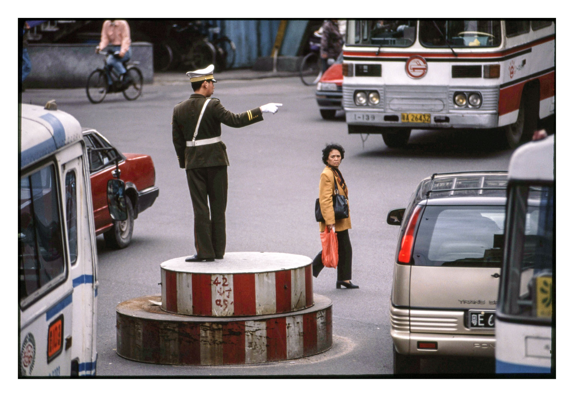 △1998年,广州中山一路,简易岗亭上,面对繁忙的交通正在努力指挥的警察。当年我们满怀憧憬来寻求繁华大城市,才发现来到了一个“中国最大的乡镇”,不经历风雨,怎能见彩虹,今天的广州已经变得非常美丽。我在那奋斗了 12年,也有一份功劳。