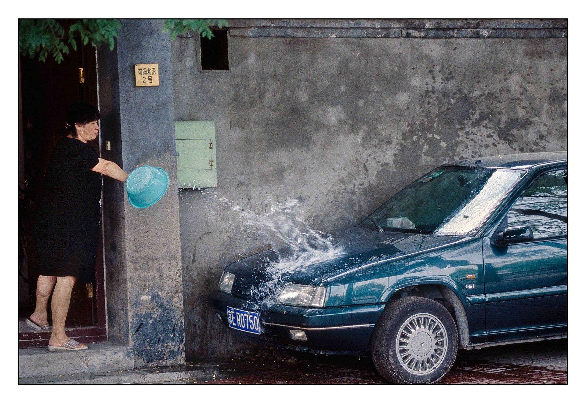 △1999年,北京后海。走在前海北沿,突然四合院的门一开,一盆水浇在了院门口的富康车上,那时的小汽车就是捷达富康桑塔纳老三样,虽然买得起车,但洗车得省着点水。