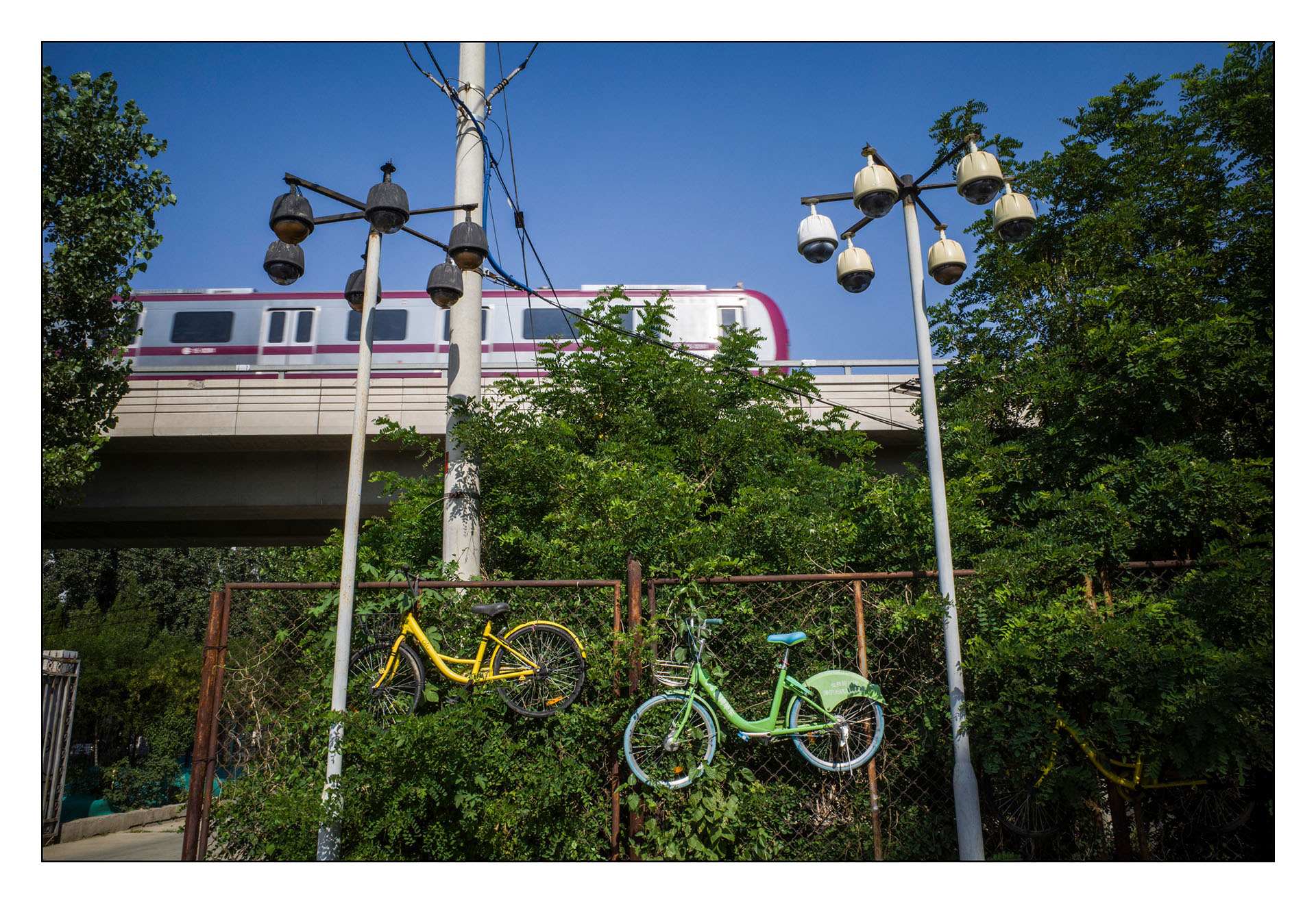 △2019年,北京郊区常营。高架上的磁悬浮列车疾驰而过,共享单车的命运还未明朗。北京市城市交通轨道总里程已经近700公里,车站405座,是世界上地铁线路最长、安全度第一的城市。