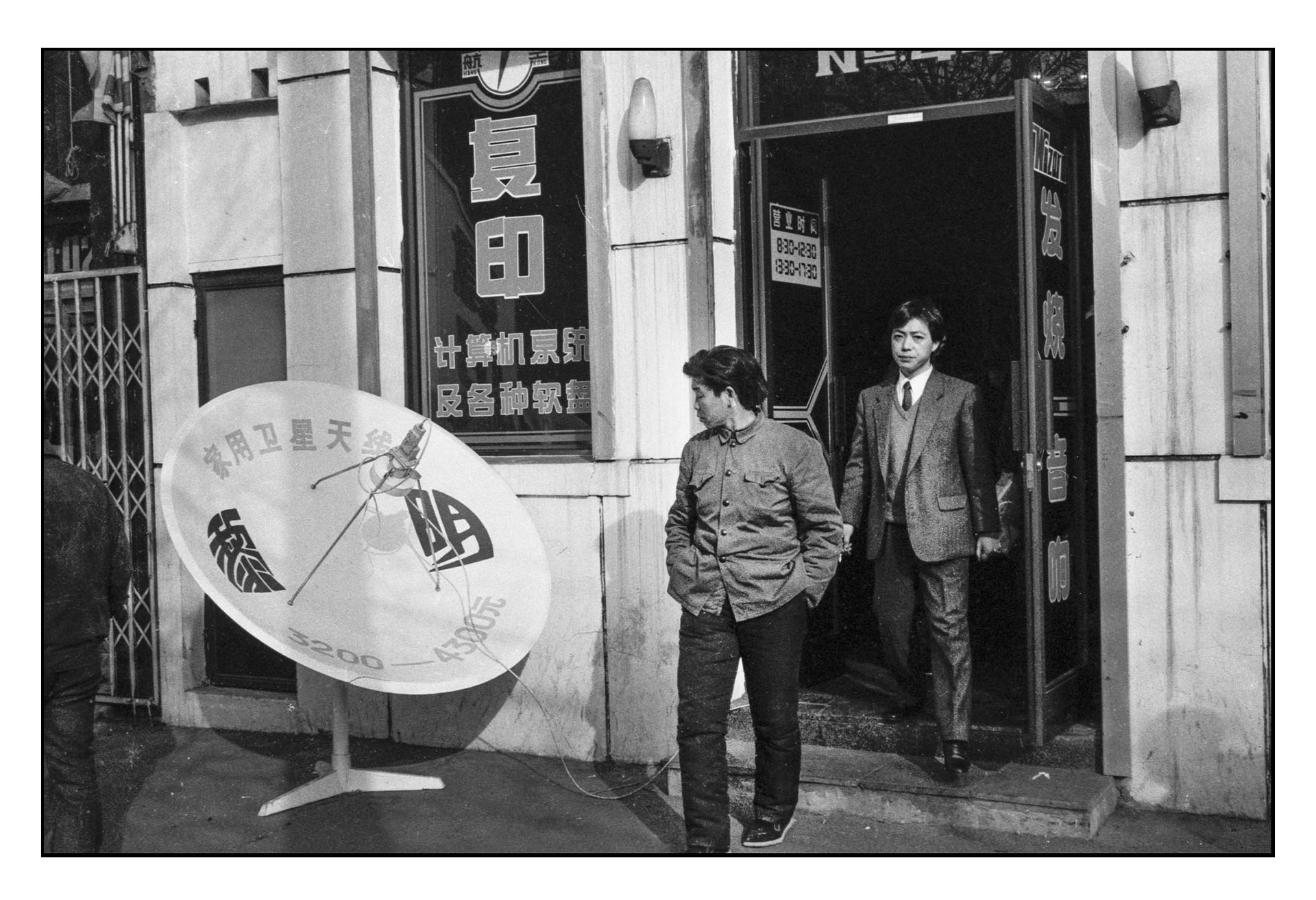 △1993年,北京。这家通讯音响店在路边打出了家用卫星“装锅”3200—4300元的广告,我羡慕那些进进出出追求时尚的年轻人,对于一般家庭来说,这绝对是一件奢侈消费。而我那时和同事一起住在北京的一间地下室,单位帮我们出的房租一一200块。