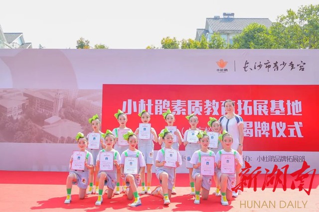 科教新报·新湖南客户端讯(通讯员 方鸣)立足新起点,开启新征程。9月12日上午,长沙市青少年宫小杜鹃素质教育拓展基地(八方校区)揭牌仪式在岳麓区八方小区龙柏湾商业街南广场举行。团市委书记会议成员、长沙市青少年宫主任李明,八方社区党委书记、居委会主任俞双平共同为校区揭牌。长沙市青少年宫副主任张丽江、拓展体验部部长李旗与全体部门成员以及基地部分学员、家长、社区居民共同参与了活动。