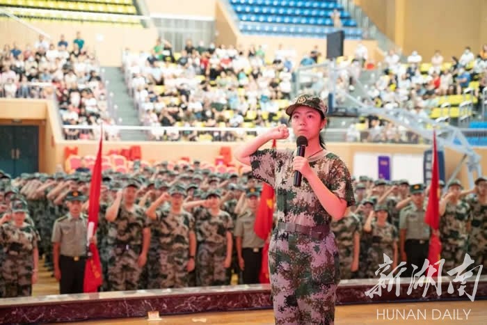 紧接着,高一2021级学生宋婕带领全体新兵们宣誓:“预测未来的最好办法,就是现在创造未来。奋斗正青春,吾辈当勤奋。今日我们是时代的追风少年,明日将成为国家的栋梁!”铿锵誓言,掷地有声。