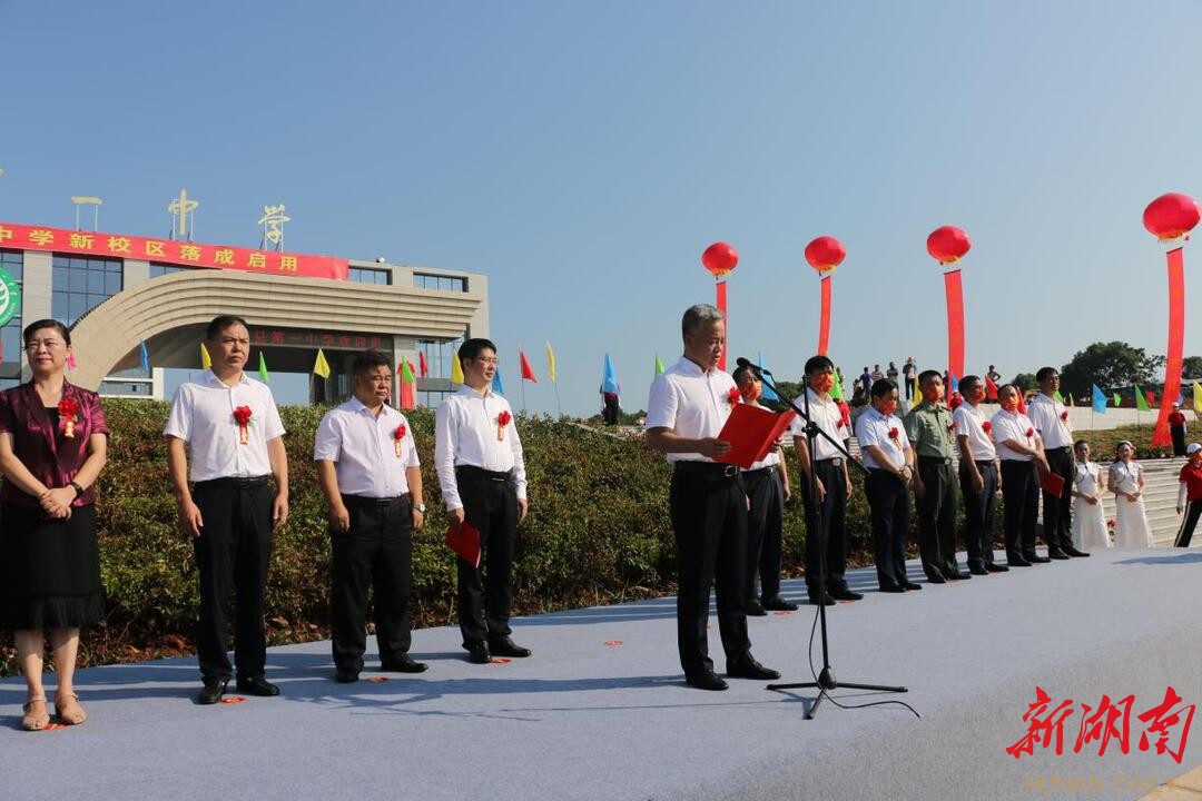 新湖南客户端9月1日讯(通讯员 曹松鹤 郑瑶)孟母三迁成参天乔木,学子群徙为栋梁之才。8月31日8点38分,永兴县第一中学新校区落成启用暨揭牌仪式在新校区广场隆重举行。郴州市委常委、副市长梁成谷,郴州市教育局党委书记、局长肖正科,永兴县委书记刘朝晖、县四大家主要领导、全县在职副处级以上领导干部和相关部门、单位负责人等受邀参加启用仪式。启用仪式由县委副书记、代县长宾心华主持。