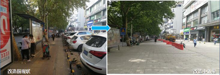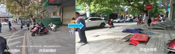 “改造前,沿线道路两厢建筑前坪大多被违章建筑和机动车占用,居民活动空间受限,出行不便。”该项目有关负责人介绍,此次提质改造将沿线大部分道路两厢的建筑前区(建筑退让)纳入城市道路整体提质改造范围,打造整体街道空间。同时,梳理道路红线,拆除违章建筑,整治占道停车,释放道路空间,通过城市交通微改造和环境微改造,解决道路通行不畅、无障碍缺失等问题,提升市民的慢行体验。