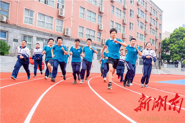 (9月1日,长沙市各中小学开学。图为长沙市第二十一中学学生在校园奔跑。刘周军/摄)