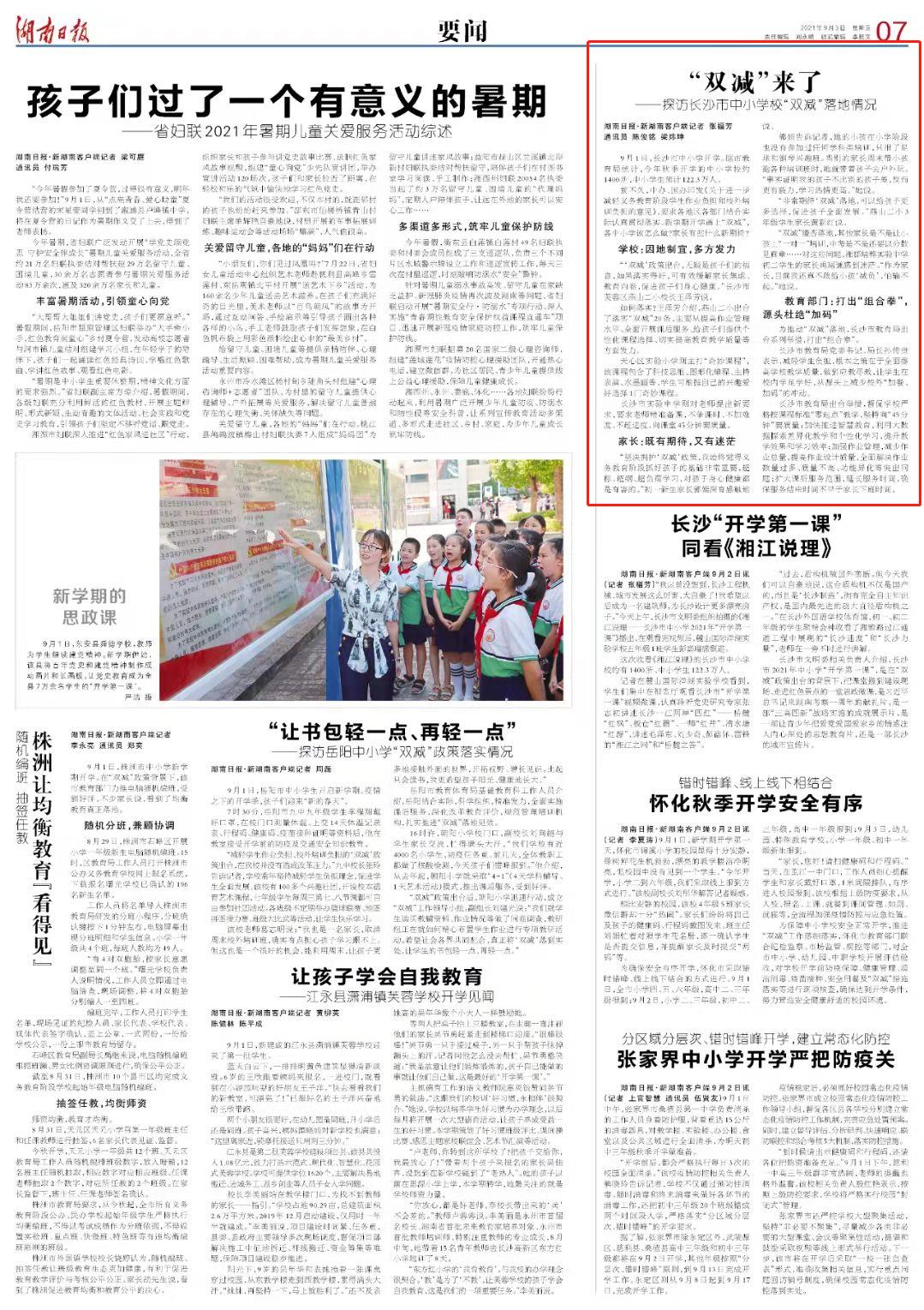 如何推动“双减”落地,得到学校和家长支持,形成校内校外双向发力,学校家庭双向合力。长沙市教育局出台系列举措,打出“组合拳”。