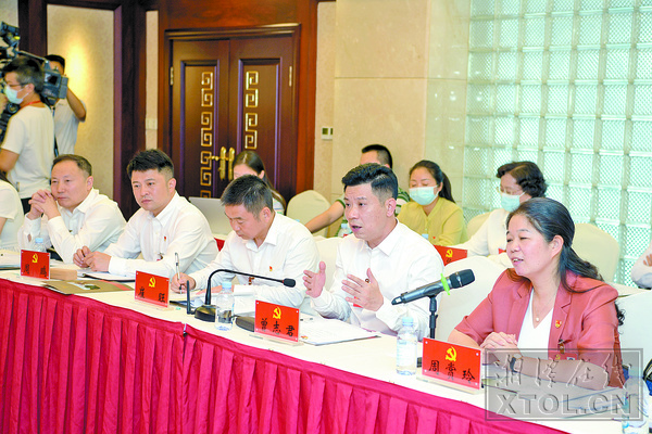 各代表团开展分组讨论。 (湘潭日报社全媒体记者 方阳 摄)