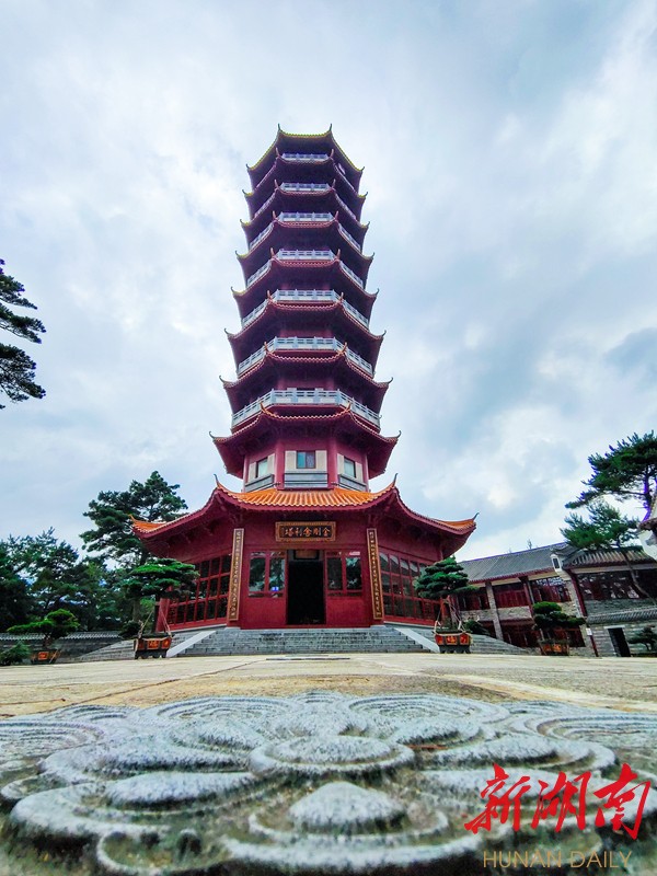 湖南日报·新湖南客户端9月1日讯(通讯员 周翔宇 记者 聂沛)金刚舍利塔位于南岳衡山南台寺后侧的瑞应峰,海拔600多米。该塔占地面积223平方米,建筑面积679平方米,高48米,坐落在花岗岩上,为八面九层阁楼式仿宋建筑,塔内顶层藏有经国家文物部门和中国佛协鉴定的两枚佛舍利。游人可以登至宝塔高处,俯瞰南岳衡山秀丽的自然风光以及南岳城区。