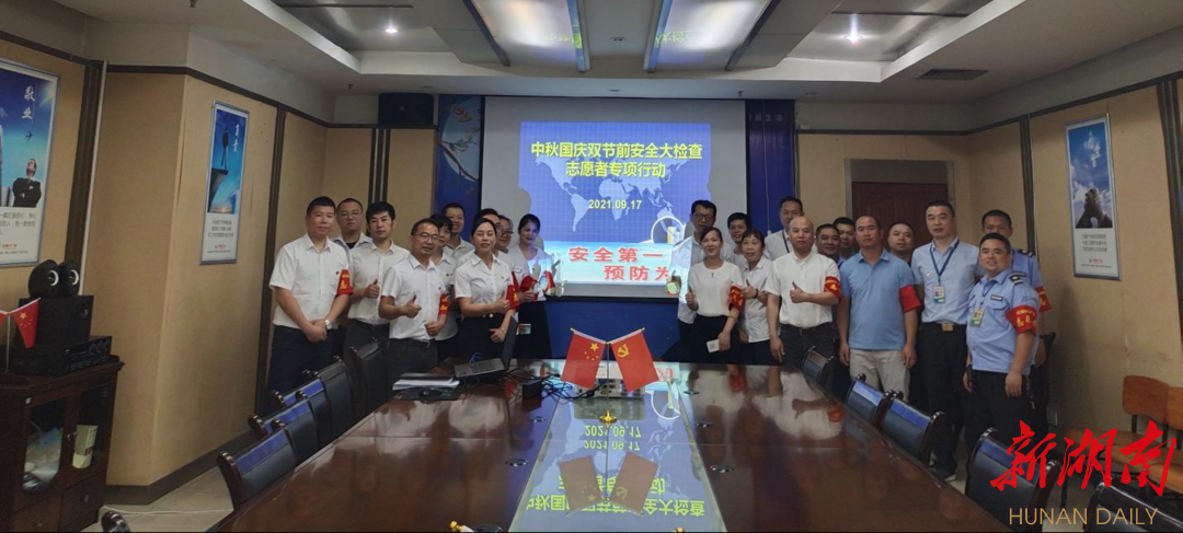 新湖南客户端9月18日讯(通讯员黄利香)中秋、国庆长假即将来临,为切实做好“两节”节前安全经营工作,有效预防和杜绝各类安全事故,9月17日上午,朝阳街道辖区内的长沙华海3C广场党群服务站、工会开展安全大检查和安全宣传志愿者专项行动,党支部党员、入党积极分子20多人参加了本次专项行动。