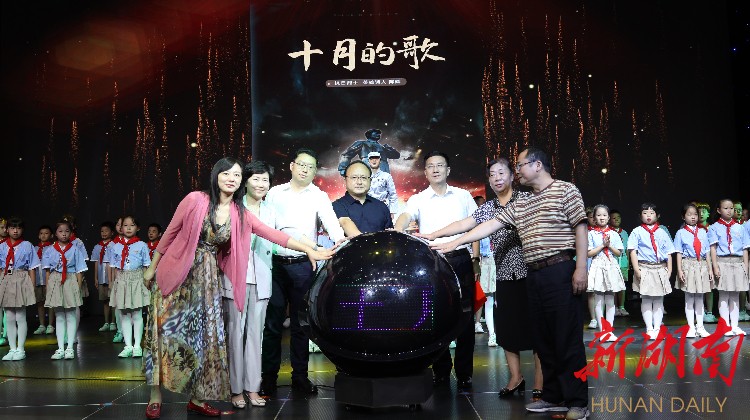 在鼎城区委书记朱金平宣布广播剧《十月的歌》开播后,中央广播电视总台《国防时空》编审、《中国退役军人》栏目主编杨鸿,鼎城区委书记朱金平,鼎城区委副书记、区人民政府区长陈远,市委宣传部二级调研员、部务会成员姜倩,鼎城区委常委、宣传部部长宋雨泓,市文旅广体局二级调研员裴劲峰,市退役军人事务局四级调研员吴海燕共同按下启动球。据了解,广播剧《十月的歌》将于10月1日至5日,在鼎广电台FM106.8 中午12点准时播出。