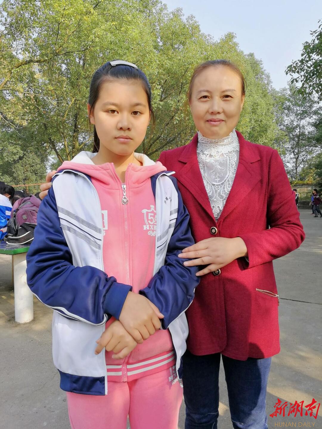 图为2017年,韩燕老师去中学看望彭雅露同学,并将她的照片和近况传递给常德微善风负责资助她的爱心人士王女士。