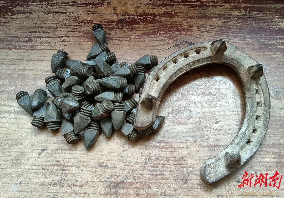 工具箱里,有多个大小不一的蹄铁和铁脐。“蹄铁就像马儿穿了足球鞋,铁脐就像足球鞋上的防滑钉。”彭彪说,“侵华日军首先占领东北,那里气候寒冷,路面结冰严重,没有这些装备,骑兵会寸步难行。”