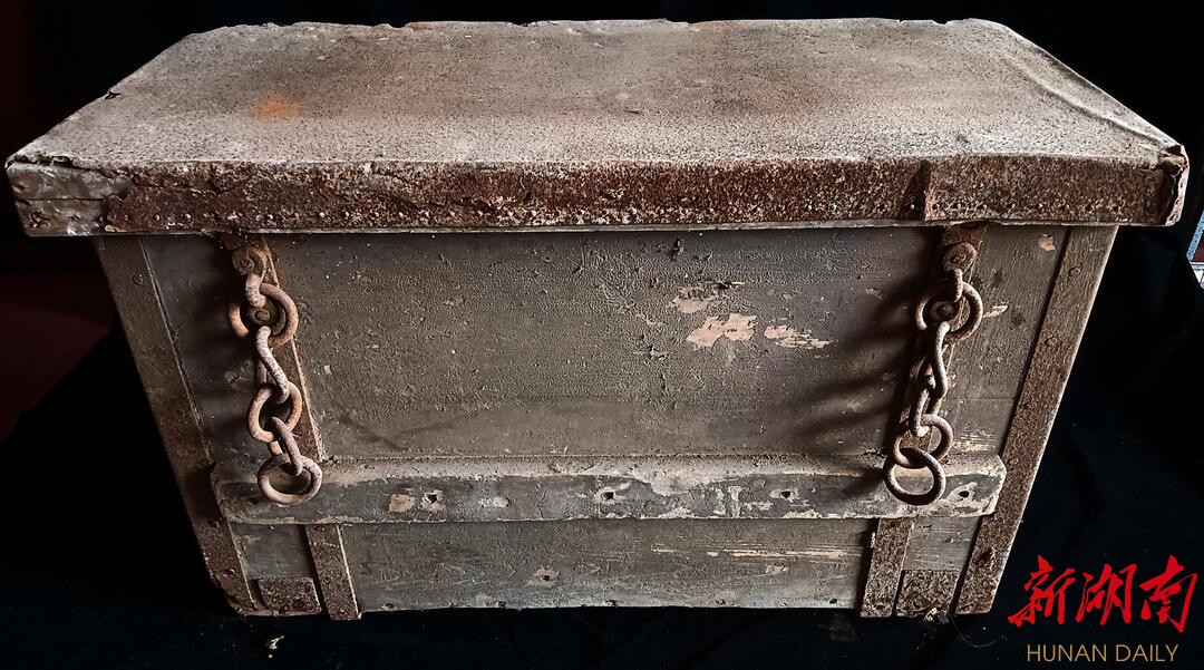 记者抬了抬箱子,发现箱子非常沉,上面包裹着铁皮,又用铁条进行加固,表面烙印着些许文字,只是读法很拗口。