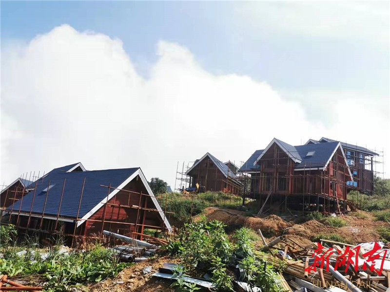 与悬崖酒店仅一路之隔的BOX Modul(模块化旅居空间产品),随山走势,采用远大住工最先进的环保科技。目前,BOX Modul正在进行水泥基桩的施工,即将进行现场装配。而在与BOX Modul同一个山头的另一面,是星空木屋酒店(小木屋)。20栋木质建筑陈列于大岩门高处的山丘上,仿佛一排蓄势待发的风筝,昂首飞向天空。走进已成型的小木屋,感受其别致的建造设计和诗情画意的环境,八面山跑马场、羊圈酒吧、特色商品街、“星云居”帐篷部落尽收眼底。