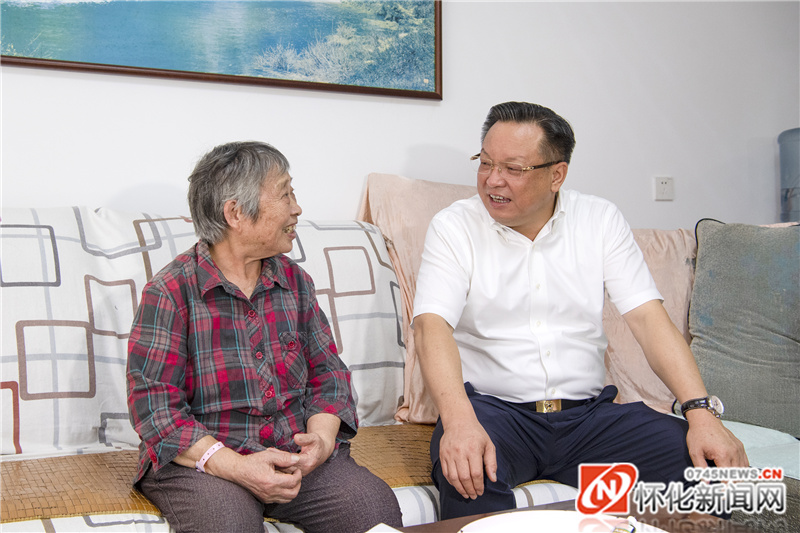 在第37个教师节到来之际,市委书记雷绍业,市委副书记、市长黎春秋,市委副书记周振宇分别走访慰问部分教师。图为9月10日,雷绍业走访慰问怀化市幼儿园退休教师欧阳爱秀。( 杨智伟 摄)