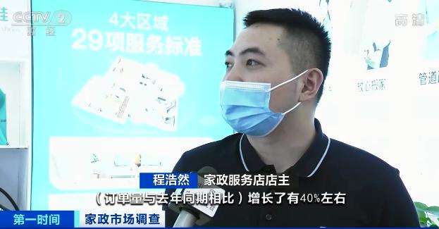 家政服务店店主 程浩然:今年旺季来得比较早,订单量与去年同期相比增长了40%左右。