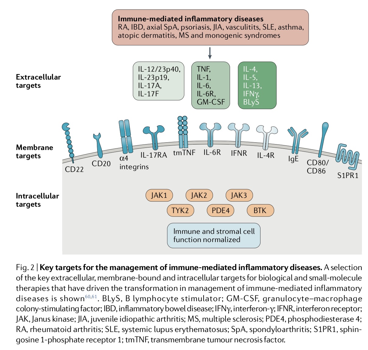 免疫介导的炎症性疾病主要靶点。图来自论文“Immune-mediated inflammatory disease therapeutics: past, present and future”。