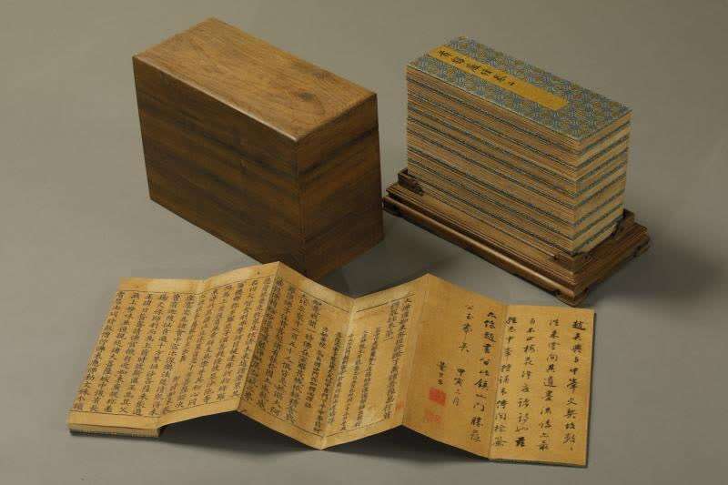 在中国古代,书装同样为人所重视。2018年,上海图书馆曾举办主题为“缥缃流彩——中国古代书籍装潢艺术”的年度大展。上海图书馆历史文献中心馆员梁颖介绍,古代图书装潢不仅是一门技术,也是一门艺术,是评判古籍等第高下的一个重要依据。就工艺层面而言,完备意义上的装潢除图书装订外,还包括书具如函套、书匣、书箱等的设计与制作。装潢与图书本身的书法、雕版等一起构成了书籍的艺术性元素。