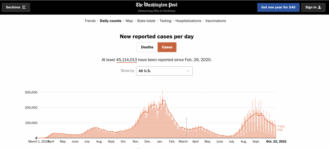据统计,从疫情出现至本月22日,已有超过4500万美国人确诊感染了新冠肺炎,数据表明,在今年秋季,美国再次迎来了感染的高峰期。