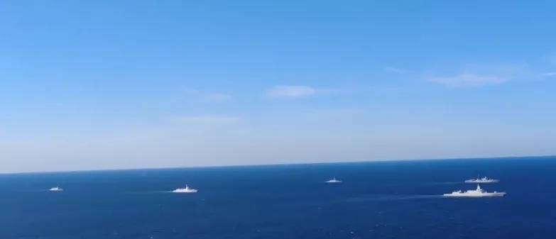 中俄海军编队由10艘舰艇组成,中俄各5艘,其中中国海军舰艇分别是055型“南昌”号导弹驱逐舰、052D型“昆明”号导弹驱逐舰、054A型“滨州”号、“柳州”号导弹护卫舰和“东平湖”号综合补给舰。