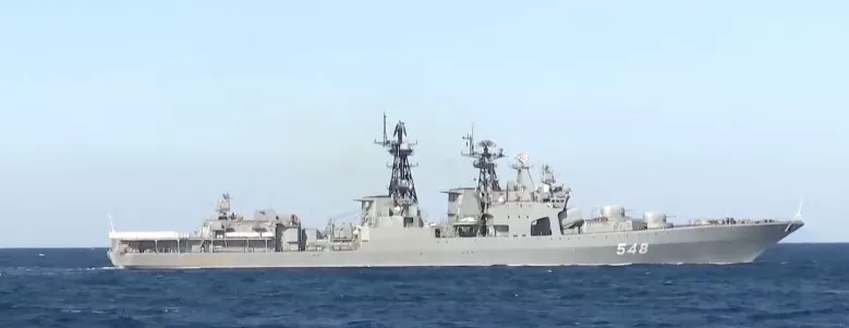 俄方舰艇分别为1155型大型反潜舰“潘捷列耶夫海军上将”号、“特里布茨海军上将”号、“克雷洛夫元帅”号电子侦察船、22350型护卫舰“响亮”号以及“俄联邦英雄阿尔达尔·齐登扎波夫”号。
