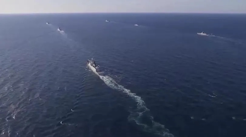 随后中俄海军组成的舰艇编队