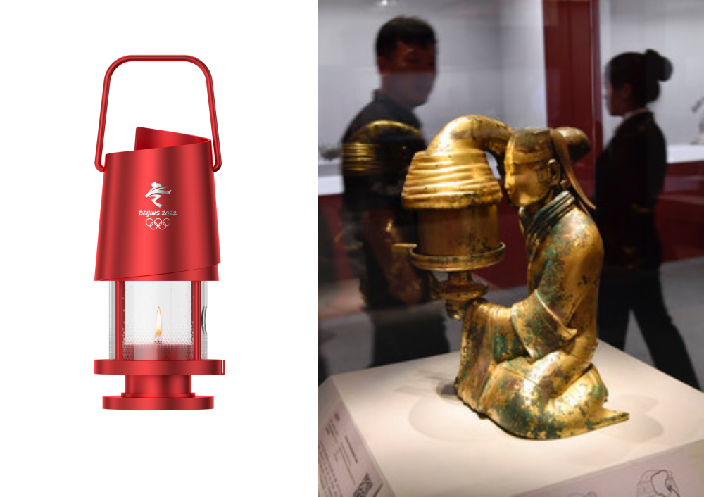 ↑火种灯的创意源于“中华第一灯”西汉长信宫灯