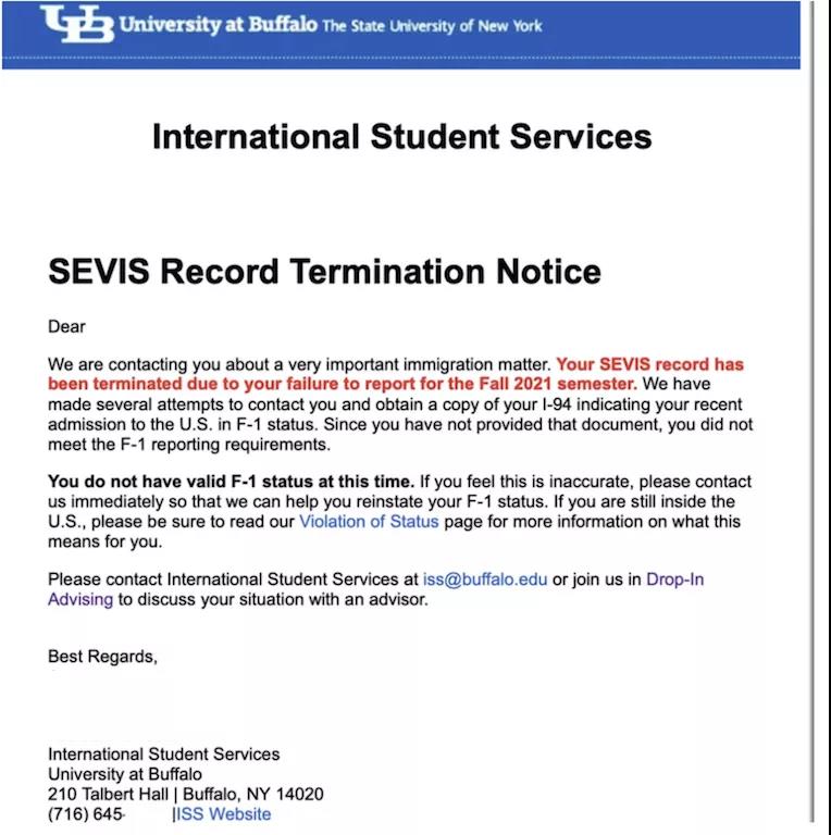 尽管是“照章办事”,但布法罗分校对国际生的强硬与怠慢仍然引发了多个教育行业团体的不满。美国国际教育工作者协会(NAFSA)下属的中国会员集团致信该校领导层,一方面承认涉事学生确实该为此事承担部分责任,但另一方面也建议该校重新斟酌一下现行规章,尽快恢复受影响学生的身份。信中提醒称,校方完全可以在线上查阅到学生的I-94表格,根本无需让他们再提交一份副本。NAFSA认为,布法罗分校实在“罚得太狠”,涉事学生之后将面临着一系列的“折腾”——回国隔离、重新上网课、更新健康码和疫苗状态,然后返美时再重复一遍这些流程,这不仅不利于他们的学业,甚至还会影响到身体健康。据媒体了解,一些学生已经开始准备回国,等待他们的将是“天价机票、一个月的自费隔离、再次申请签证以及并不可靠的网课”。