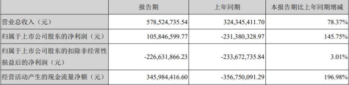 但上半年归属于上市公司股东的扣除非经常性损益后的净利润依旧为负数,达到约-2.27亿元,仅比上年同期增长3.01%。