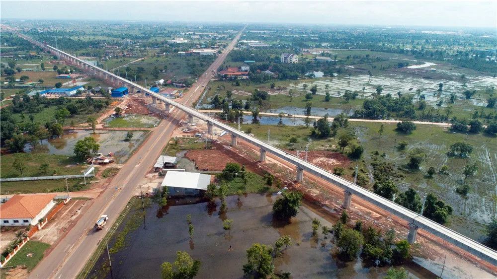 这是6月15日在老挝首都万象拍摄的中老铁路蓬通特大桥(无人机照片)。新华社发(中铁五局供图)