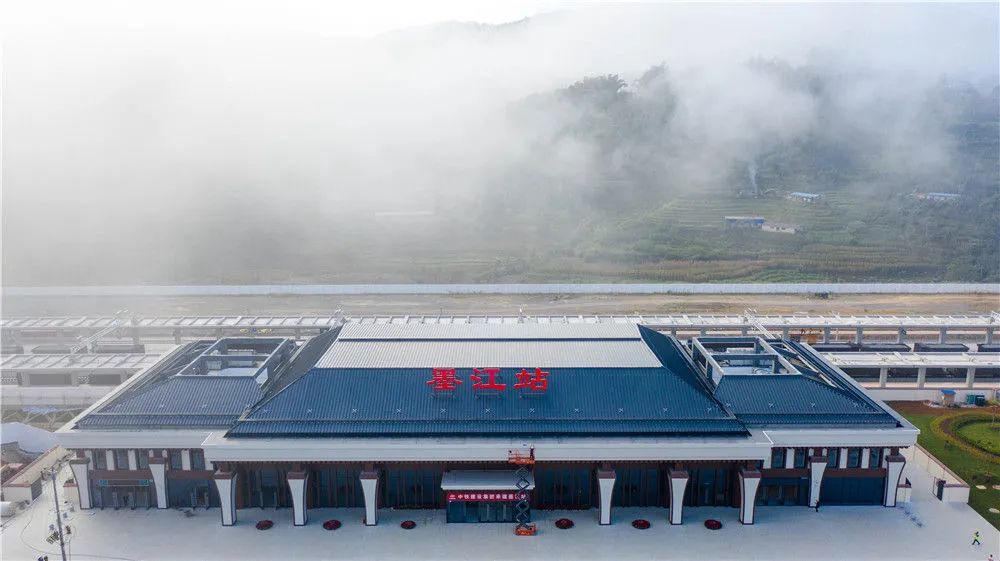 9月28日拍摄的中老铁路墨江站(无人机照片)。新华社记者 胡超 摄