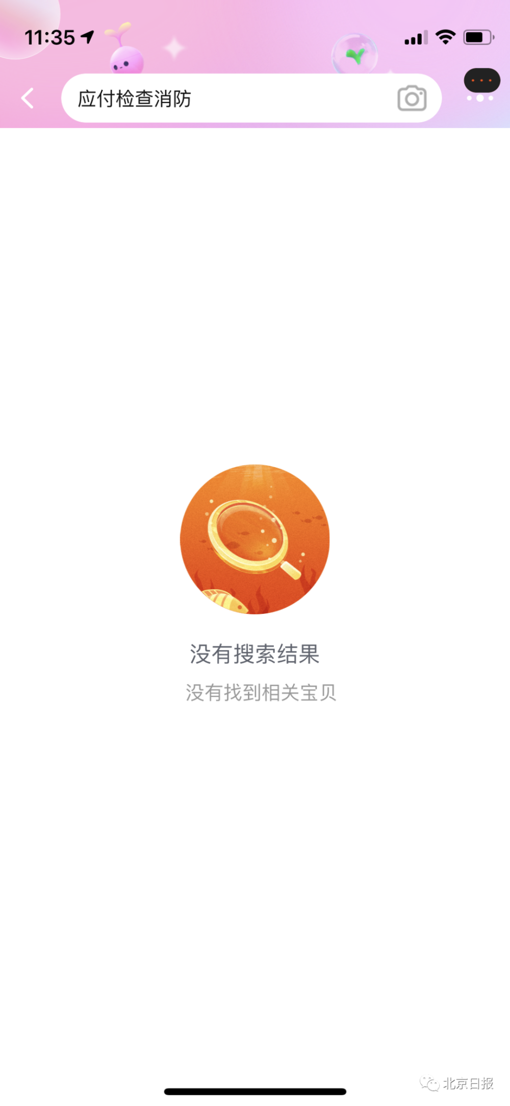 今天11时35分左右,记者搜索上述平台发现,用关键词“应付检查消防”搜索,三个平台均已显示“没有找到相关宝贝”。