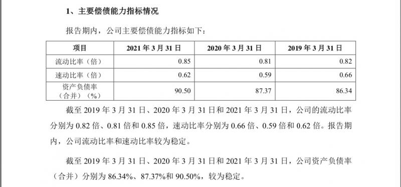 联想集团解释称,截至2019年3月31日、2020年3月31日和2021年3月31日,公司流动负债占负债总额的比重分别为79.14%、82.86%和79.61%,公司流动负债占比较高,主要原因是报告期内公司经营性负债和其他应付账款及应计费用占比较大,公司负债结构与公司的资产结构及实际经营情况相符。