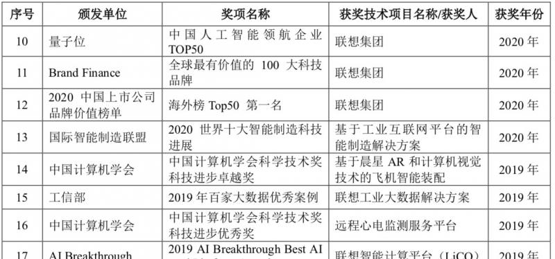 对于近年来联想获得的奖项,招股书中罗列了24项,其中包括“量子位”颁发的“中国人工智能领航企业TOP50”,而“量子位”只是一家自媒体账号。
