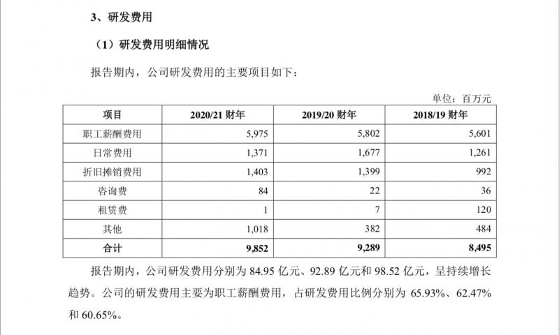 这些费用主要用来支出职工薪酬以及折旧摊销费用,其中研发人员的薪酬占了近60%、折旧摊销费用占了14%。招股书将这一数据与惠普公司、小米集团、浪潮信息等公司进行横向对比,认为最近三年累计研发投入和研发费用绝对金额较高,与可比公司相比处于较高水平。