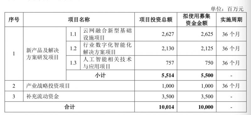 值得注意的是,联想集团计划融资金额为100亿元,实施周期为3年。其中55%用来投资新产品及解决方案研发项目,10%用于产业战略投资项目,35%用于补充流动资金。
