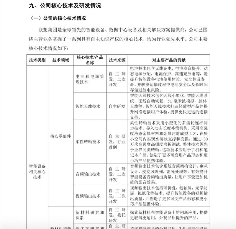 那么联想集团的研发成果主要是什么呢?据招股书,其核心技术包括智能设备的电池和单元管理技术、智能天线技术、音频输出技术、行业智能的语音识别技术、机器学习预测分析、工业物联网等31项技术。其中,二次开发的有4项、委托开发的有3项。