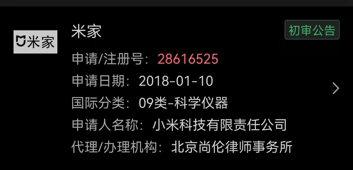 根据北京知识产权法院的一审判决书显示,小米曾申请注册“米家mijia”商标,国家知识产权局因已经存在类似商标,驳回了小米的诉求。2020年9月,小米起诉国家知识产权局。