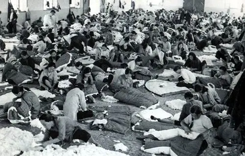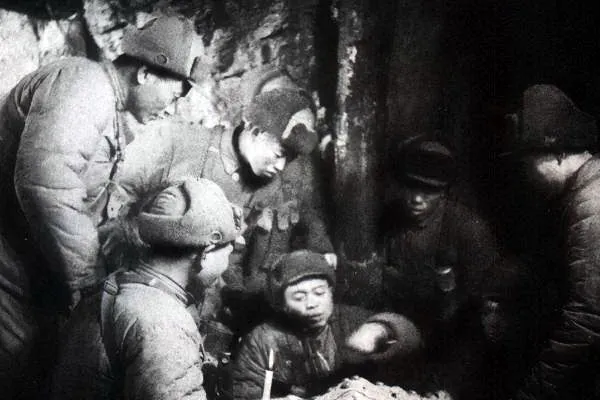 参加长津湖之战的志愿军第9兵团部队,由于紧急入朝,没有配齐冬季御寒服装,只配发了南方部队的薄棉袄,根本抵御不了朝鲜的严寒;当时战士还没有普遍配发大衣,有的是一个班有一件大衣,谁站岗谁穿;棉被也不是每个人都有,每个班十几人共用一两床棉被,在这样极度寒冷的夜晚,战士们不得不将棉被摊在雪地上,大家睡在一起,相互搂抱着抵御严寒。