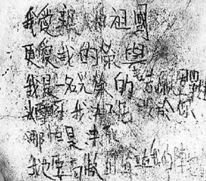 战后,人们在冰雕连一名战士的口袋里,找到了一张薄薄的纸条。这名战士叫宋阿毛,来自上海。他在纸条上写道:“我是一名光荣的志愿军战士,冰雪啊!我决不屈服于你,哪怕是冻死,我也要高傲地耸立在我的阵地上!”