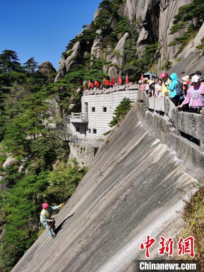 国庆假期,安徽黄山风景区迎来客流高峰。10月2-4日,黄山风景区每天接待游客超过两万三千人,这让黄山景区环卫工人比平时要更加辛苦,特别是放绳工,因为他们拾捡垃圾的地方就是在黄山的悬崖绝壁上。